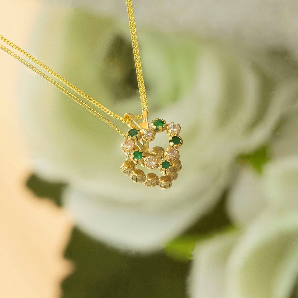 9ct Gold Green And White Cubic Zirconia Heart Necklace - R69110