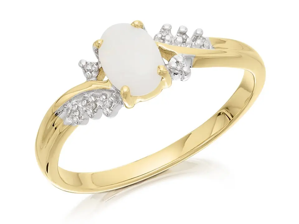 9ct Gold Opal And Diamond Twist Ring - X10725