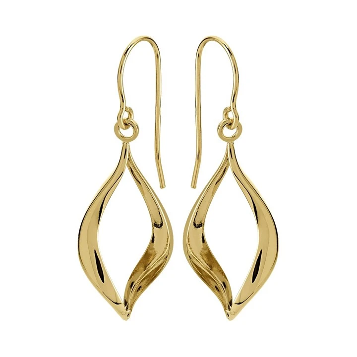 9ct Gold Open Teardrop Hook Wire Earrings - 32mm drop - G1237