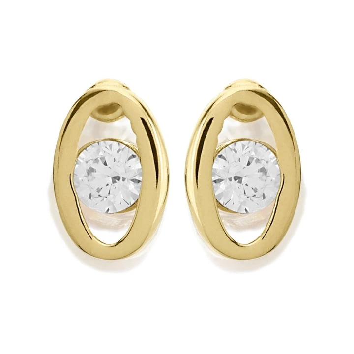 9ct Gold Oval Cubic Zirconia Stud Earrings - 6mm - G27109