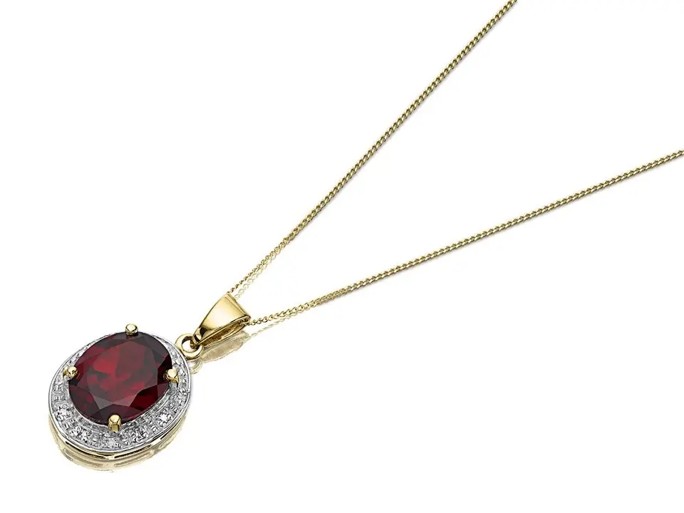 9ct Gold Oval Garnet and Diamond Halo Necklace - R8366