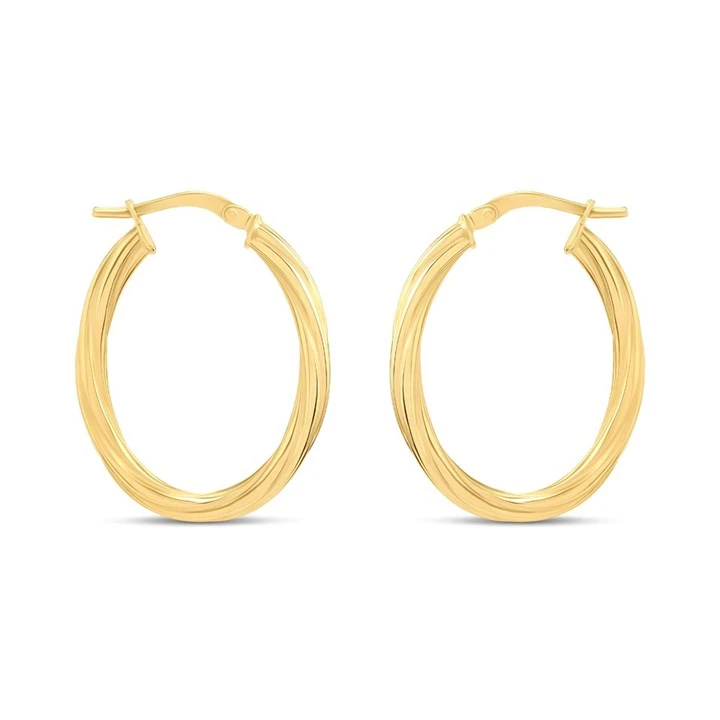 9ct Gold Oval Twist Hoop Earrings - G41179