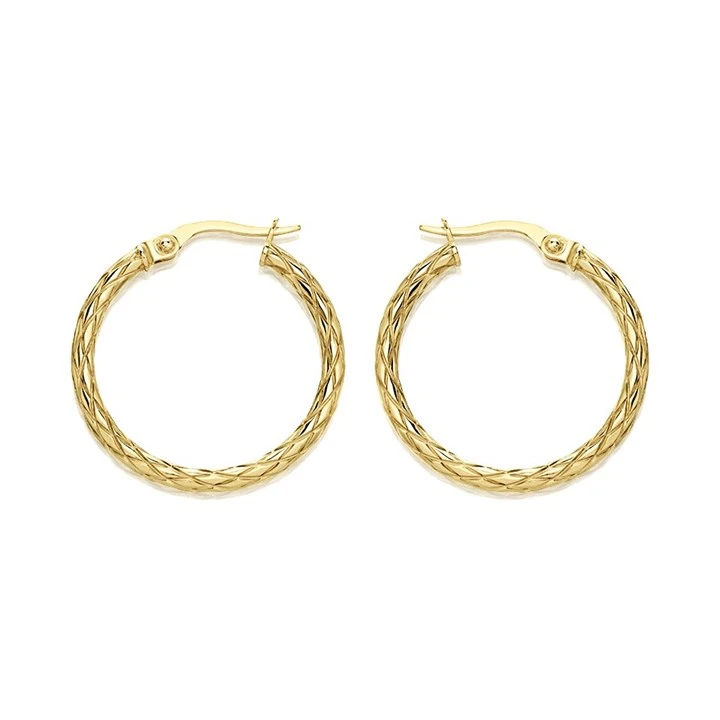 9ct Gold Patterned Hoop Earrings - 24mm - G2479