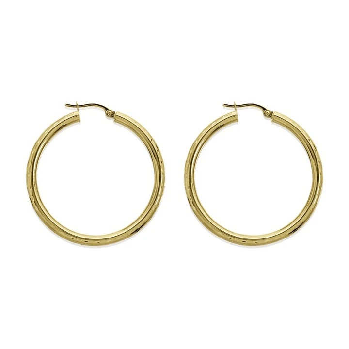 9ct Gold Patterned Hoop Earrings - 35mm - G41117
