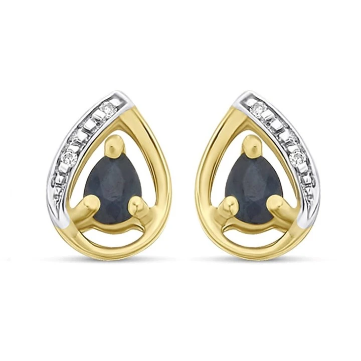 9ct Gold Pear Sapphire And Diamond Stud Earrings - 8mm - G0324