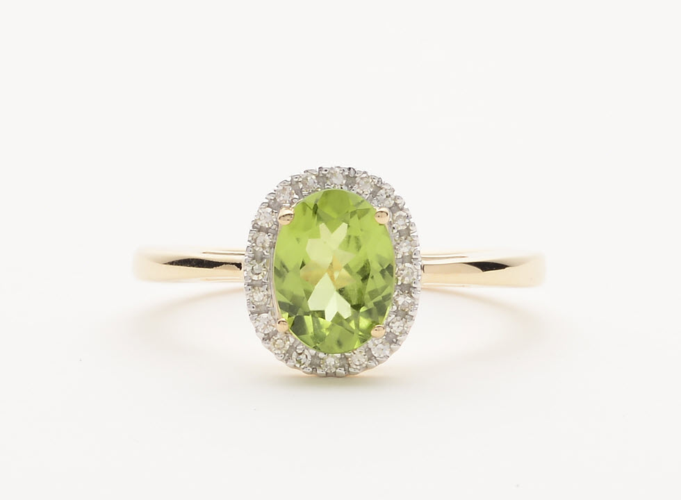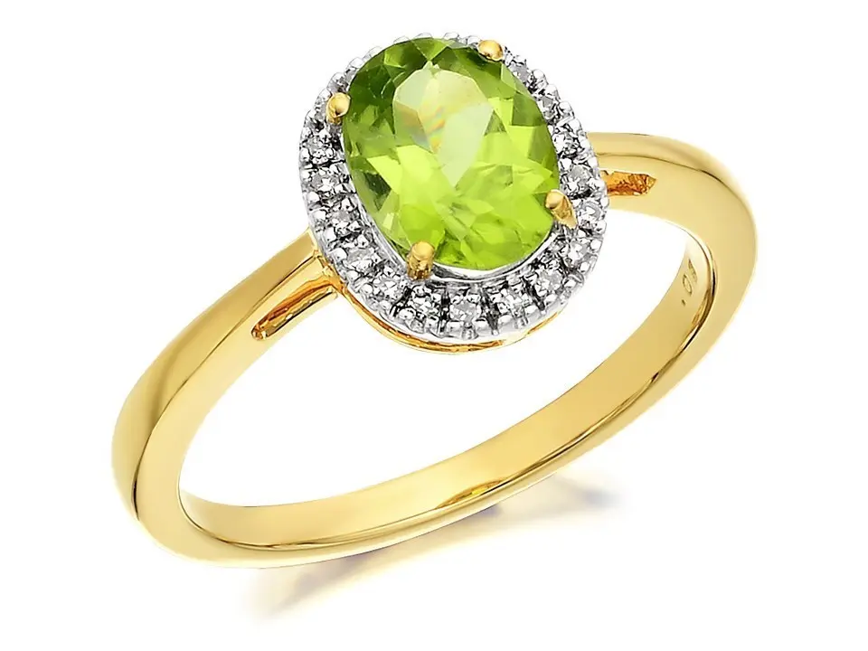 9ct Gold Peridot And Diamond Cluster Ring - 8pts - D8470