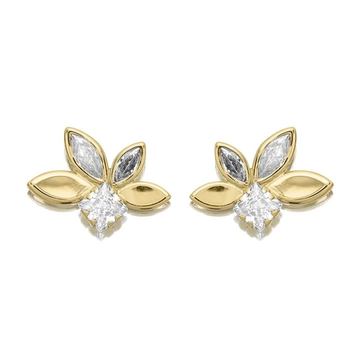 9ct Gold Petal CZ Stud Earrings - 6mm - G3267