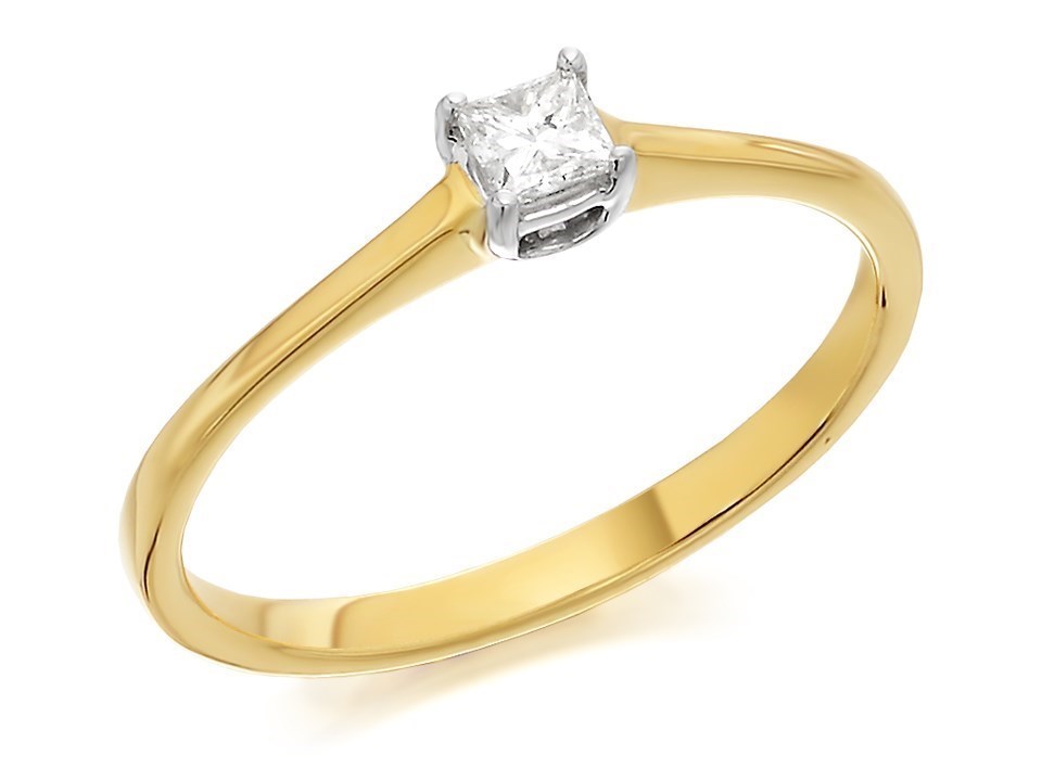 9ct Gold Princess Cut Diamond Solitaire Ring - 15pts - AGI Certificated - D5012