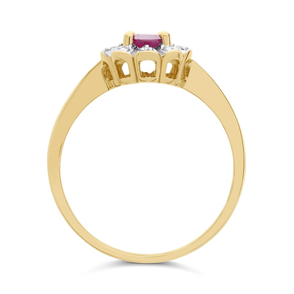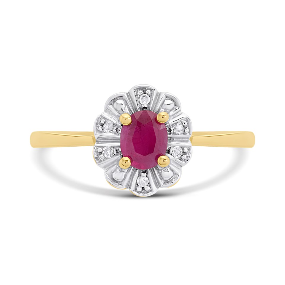 9ct Gold Ruby And Diamond Cluster Ring - D7435