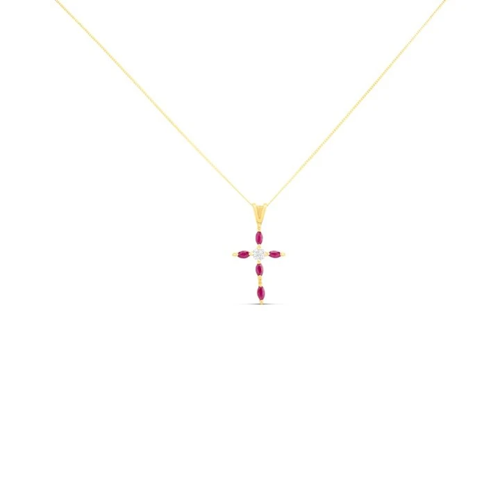 9ct Gold Ruby And Diamond Cross - D97125