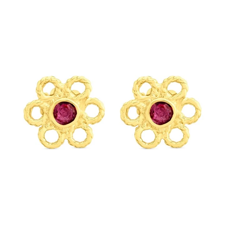 9ct Gold Ruby Daisy Stud Earrings - G04130