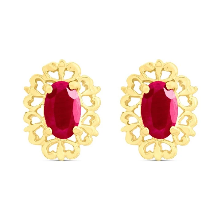 9ct Gold Ruby Fancy Border Stud Earrings - G04132