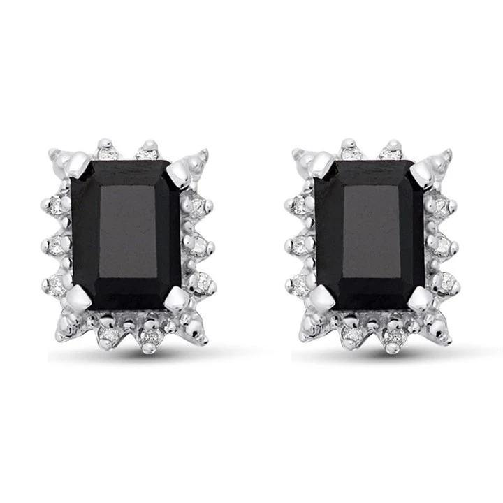 9ct Gold Sapphire And Diamond Cluster Stud Earrings - 8pts per pair - D54116