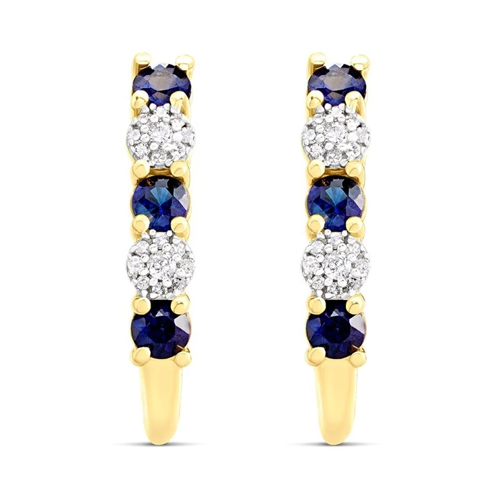 9ct Gold Sapphire And Diamond Curved Stud Earrings - 8pts per pair - D9676