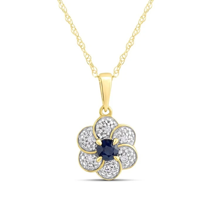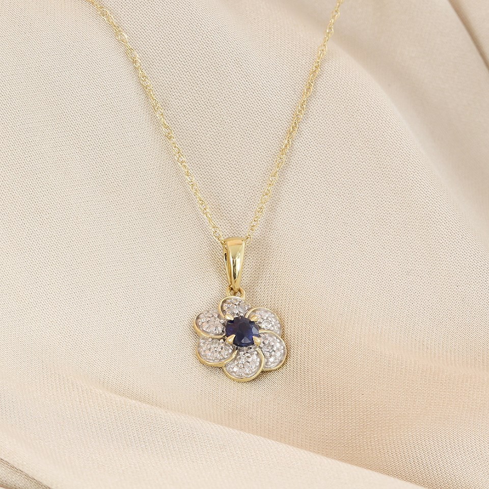9ct Gold Sapphire And Diamond Flower Necklace - D95201