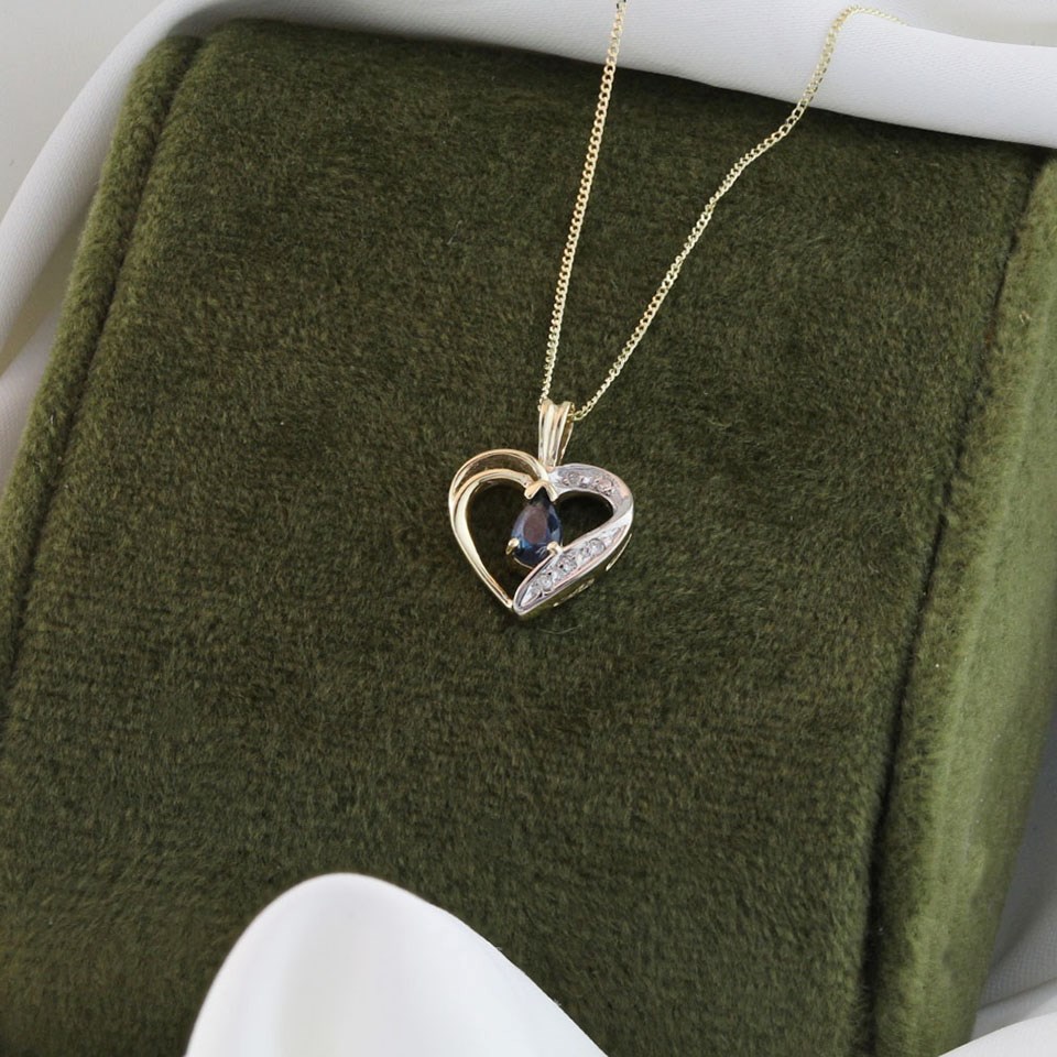 9ct Gold Sapphire And Diamond Heart Necklace - R8138