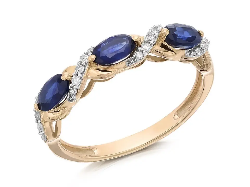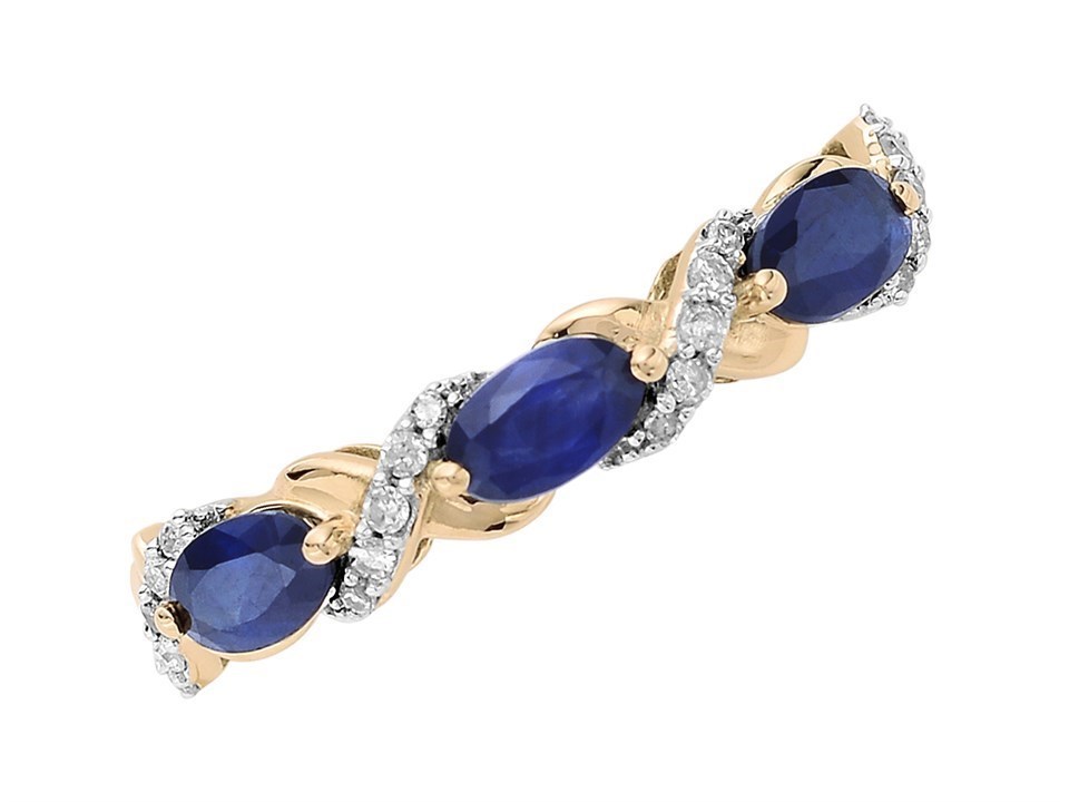 9ct Gold Sapphire And Diamond Kiss Ring - 10pts - D8117