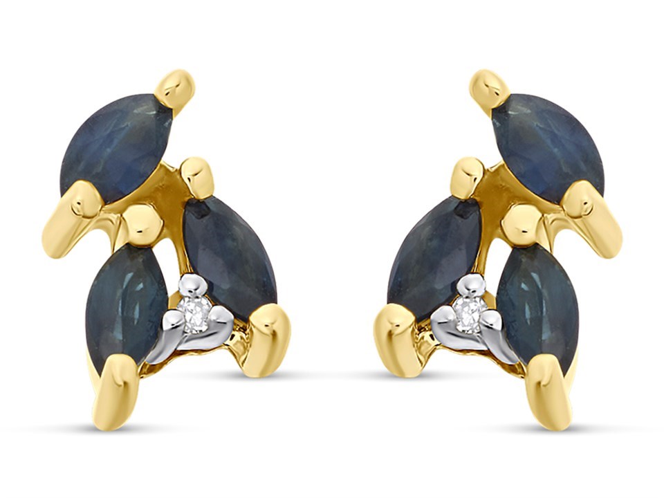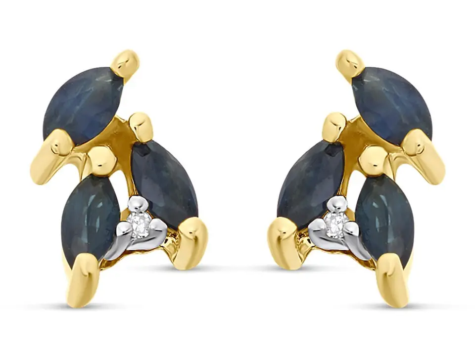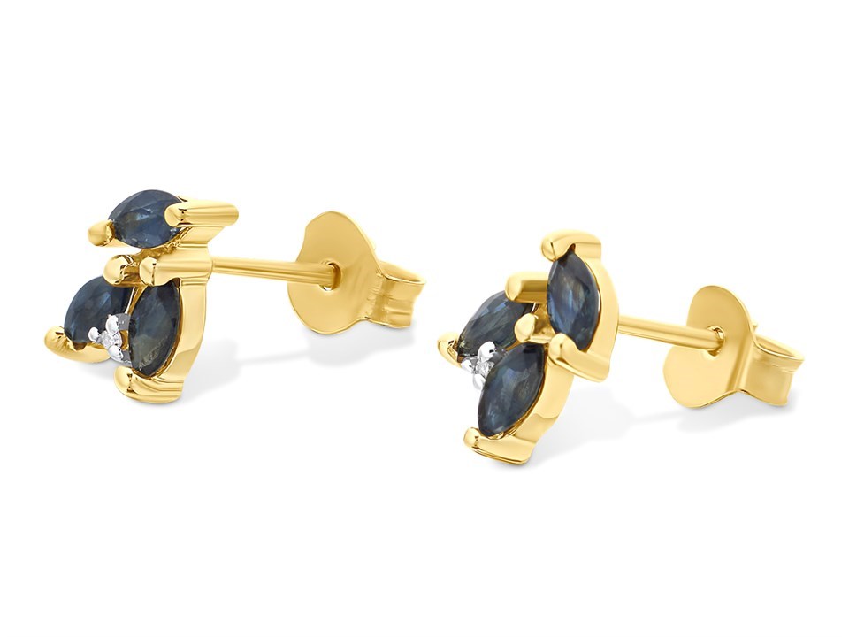 9ct Gold Sapphire And Diamond Stud Earrings - 9mm - G0322