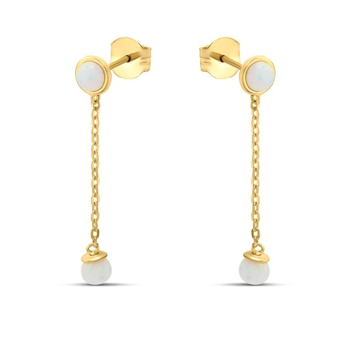 9ct Gold Synthetic Opal Long Chain Drop Earrings - G1853