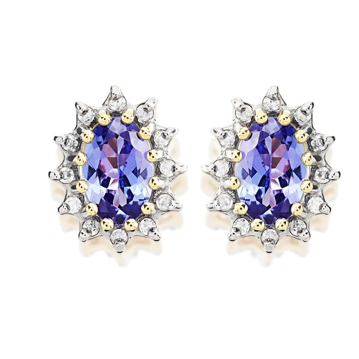 9ct Gold Tanzanite And Diamond Stud Earrings - 12pts per pair - D9685