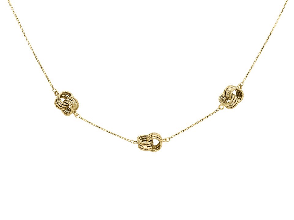 9ct Gold Textured Knot Station Necklace - 16in - R9539