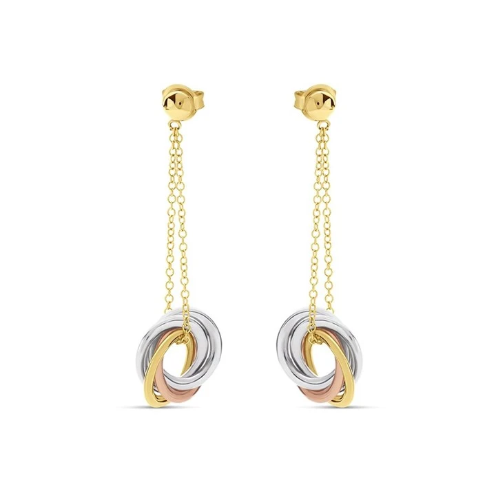 9ct Gold Three Colour Circle Drop Earrings - 40mm drop - G4818