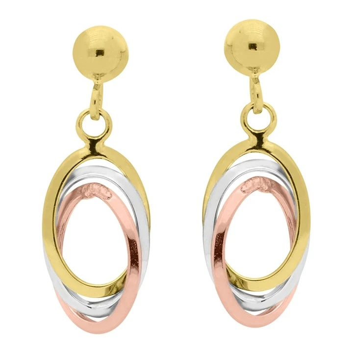 9ct Gold Three Colour Entwined Oval Drop Earrings - 20mm drop - G4822