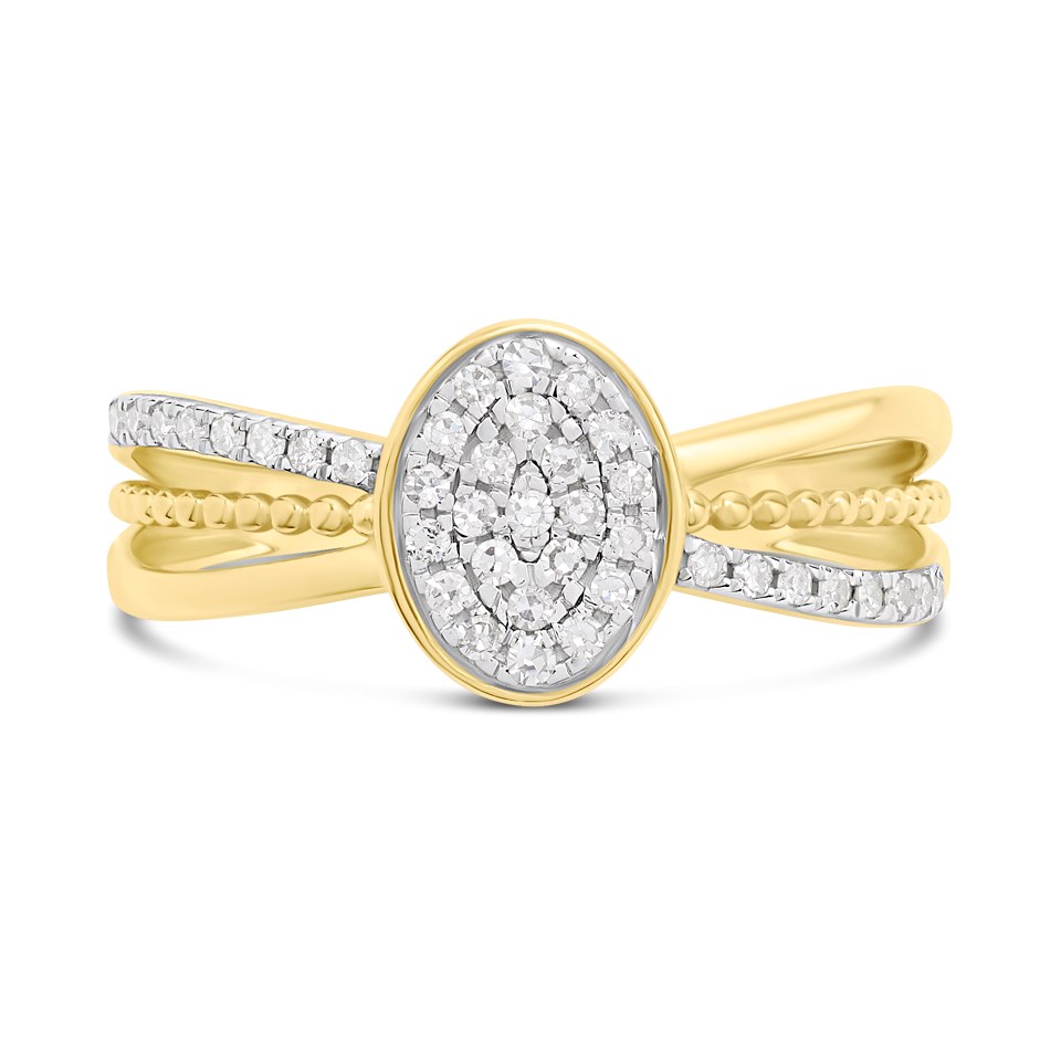 9ct Gold Three Row Oval Diamond Cluster Ring, 20pts - D92123