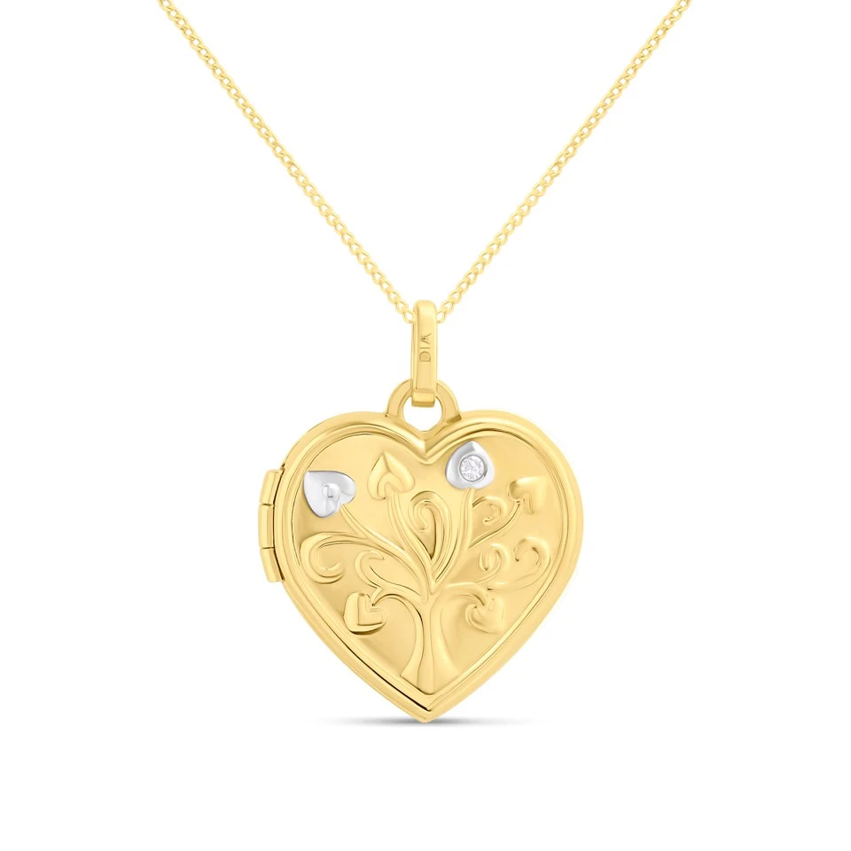 9ct Gold Tree Of Life Diamond Locket And Chain - R7255