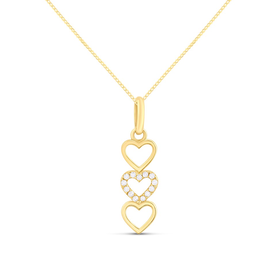 9ct Gold Triple Heart Cubic Zirconia Necklace - R69125