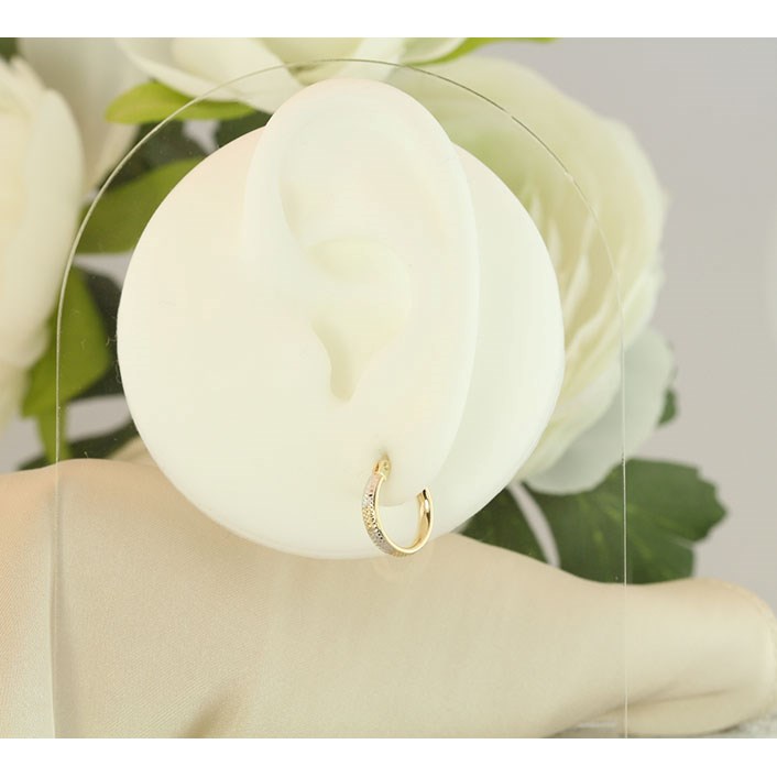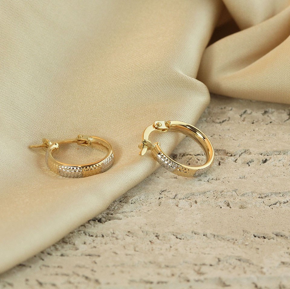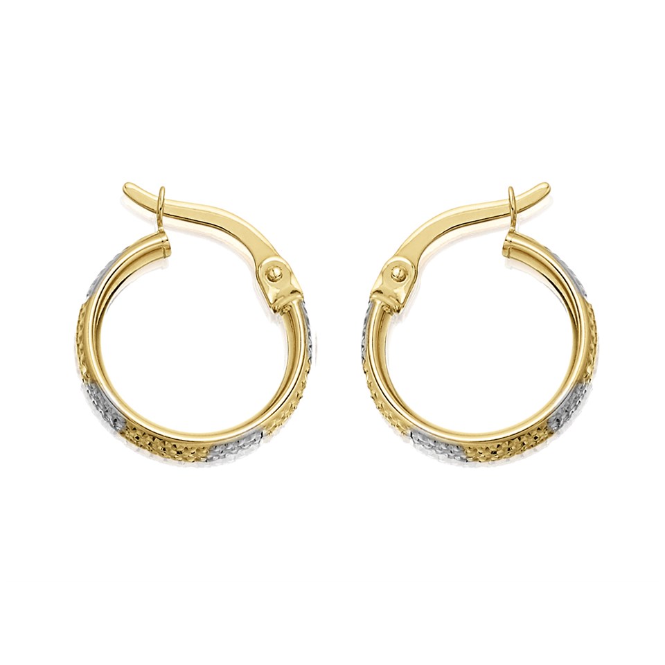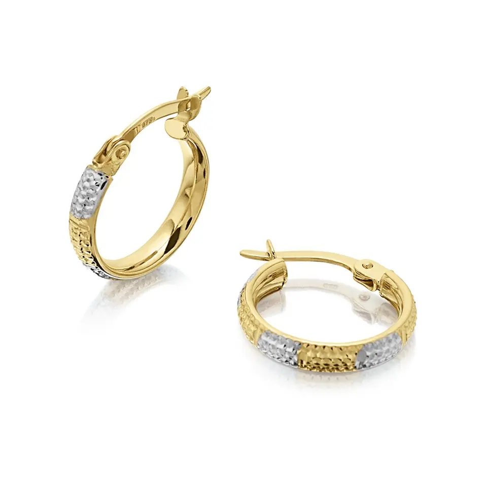 9ct Gold Two Colour Diamond Cut Hoop Earrings - 13mm - G2463