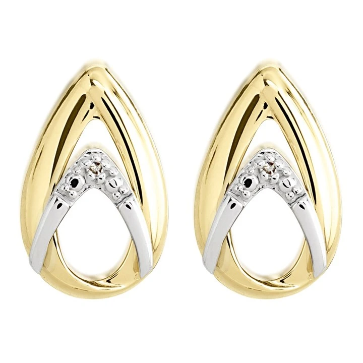 9ct Gold Two Colour Diamond Teardrop Stud Earrings - 11mm - G27132
