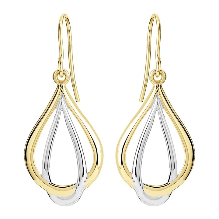 9ct Gold Two Colour Double Teardrop Hook Wire Earrings - 36mm drop - G1074