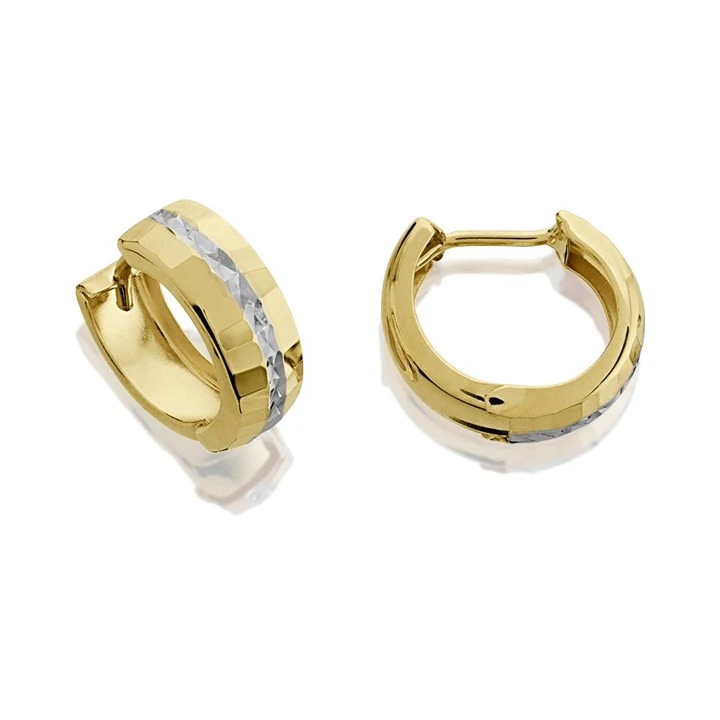 9ct Gold Two Colour Huggie Hoop Earrings - 11mm - G2443