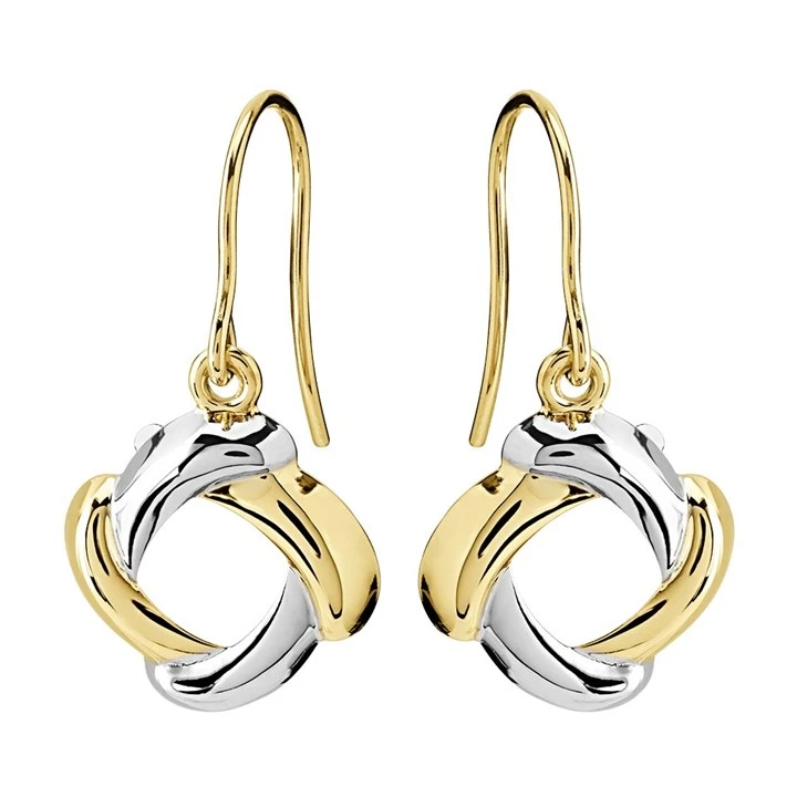 9ct Gold Two Colour Open Knot Hook Wire Earrings - 27mm drop - G1073