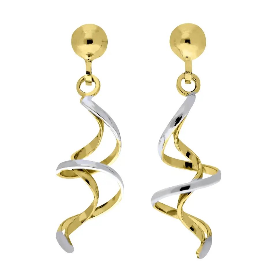 9ct Gold Two Colour Spiral Drop Earrings - G14103