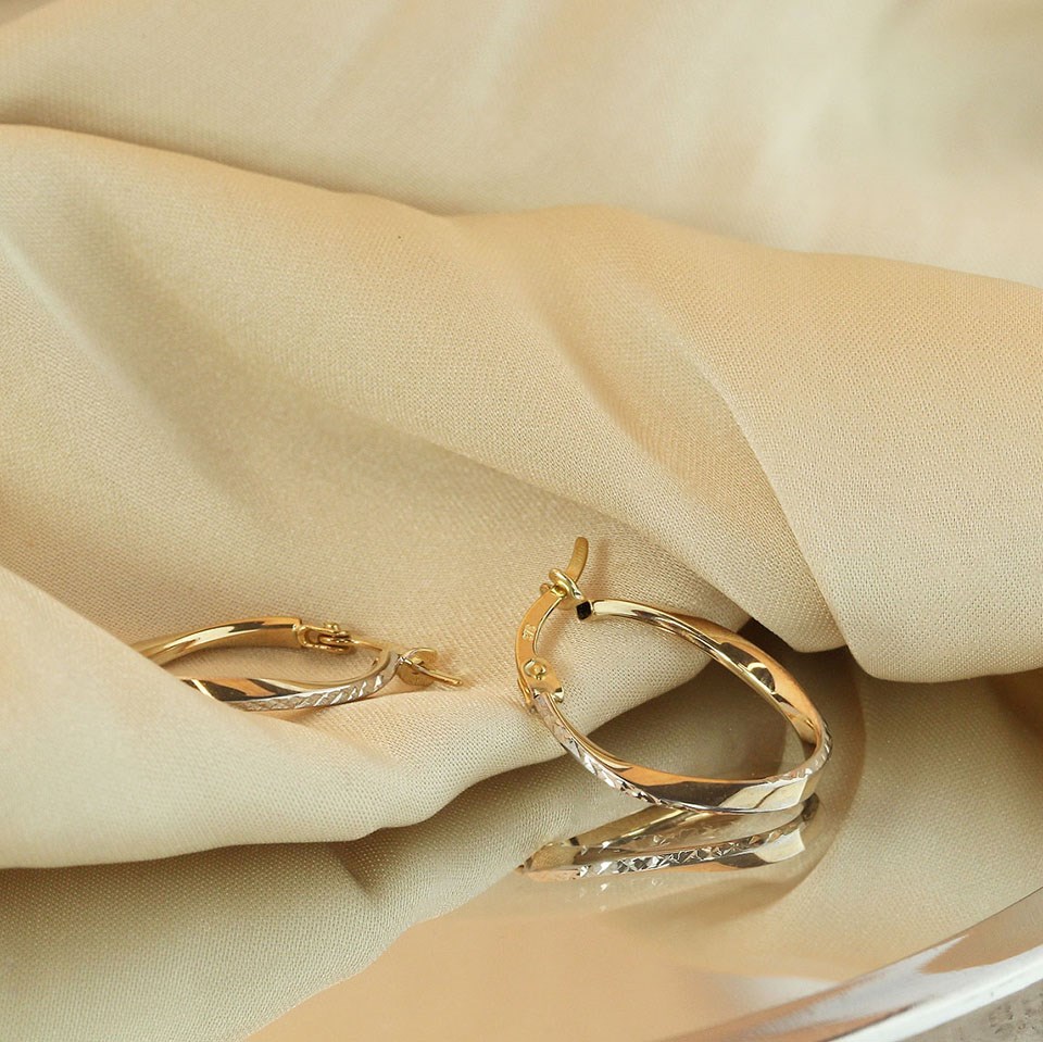 9ct Gold Two Colour Twist Hoop Earrings - 20mm - G2446