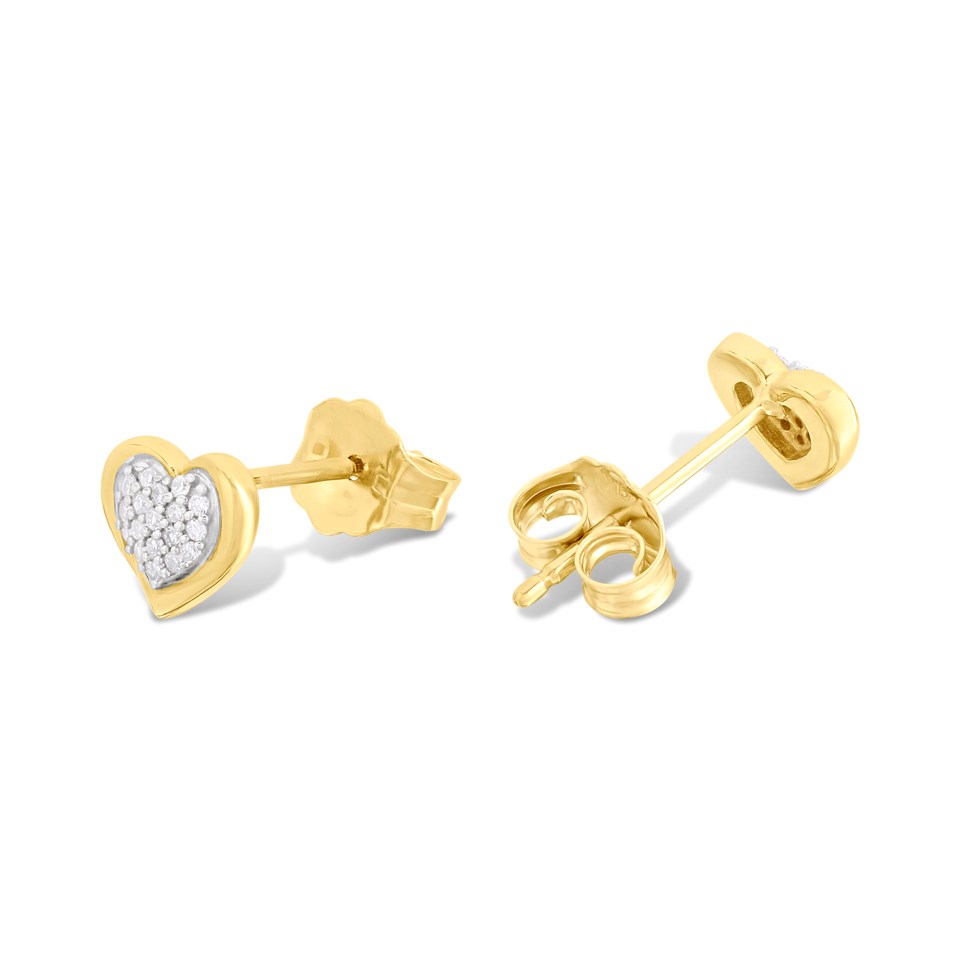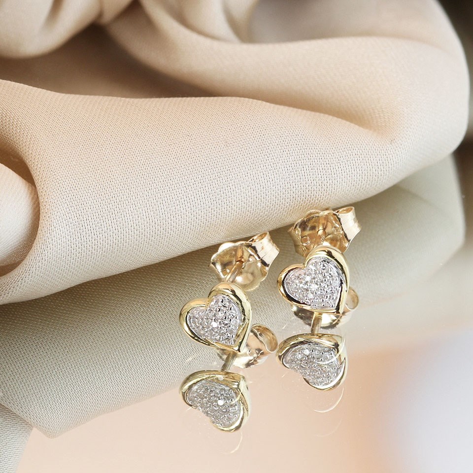 9ct Heart Shaped Diamond Cluster Stud Earrings - D9699