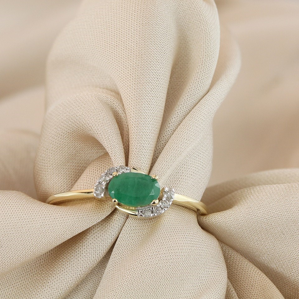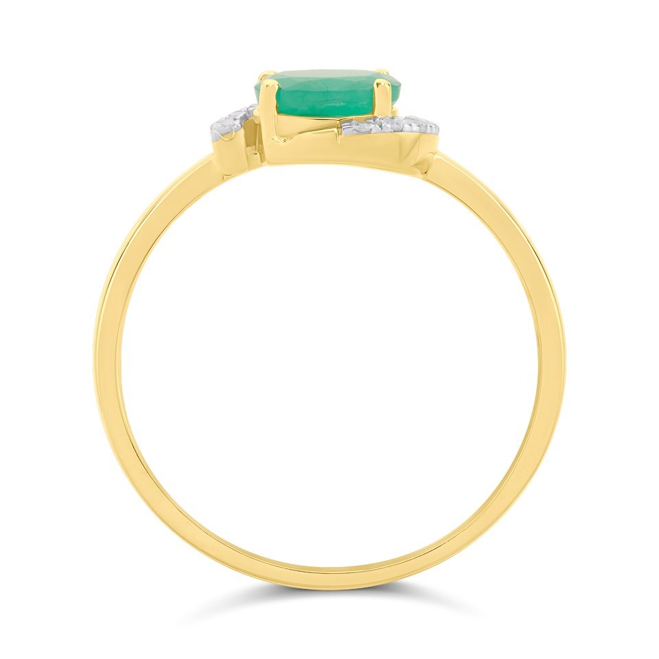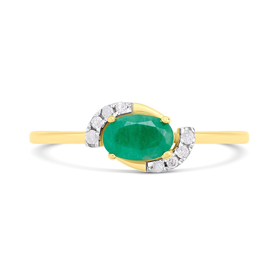 9ct Off-set Oval Emerald And Diamond Cluster Ring - D7642