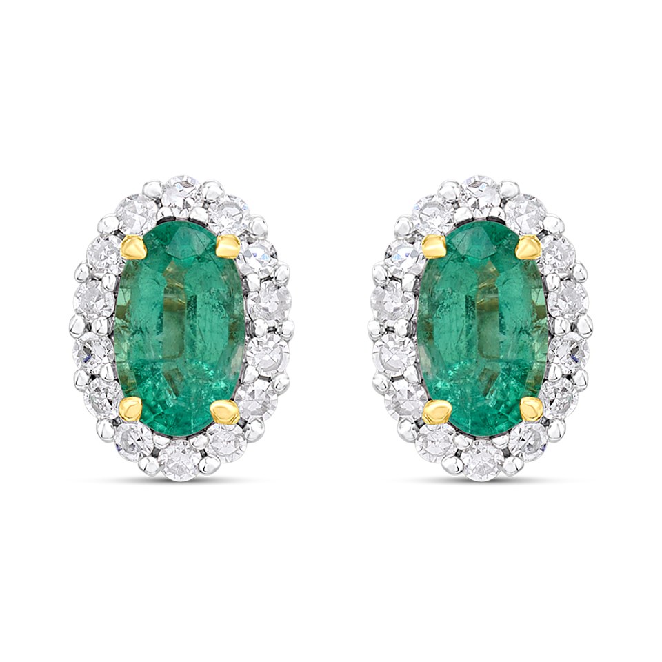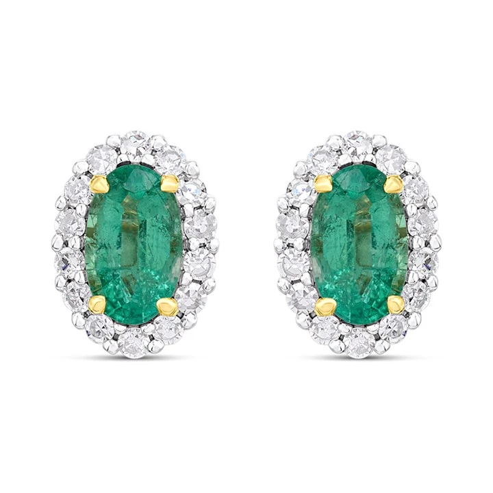 9ct Oval Emerald And Diamond Cluster Stud Ring - D96119