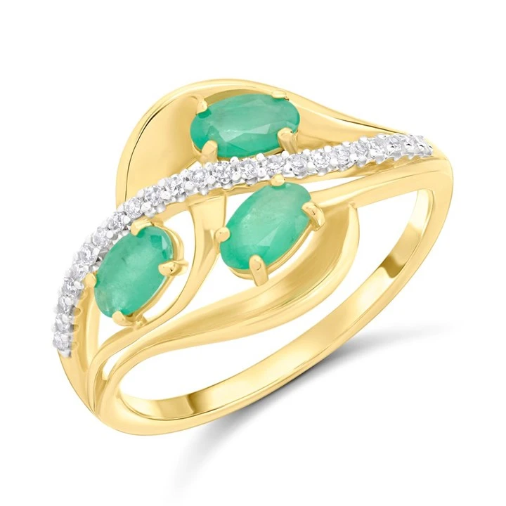 9ct Oval Emerald And Diamond Swirl Ring - D7514