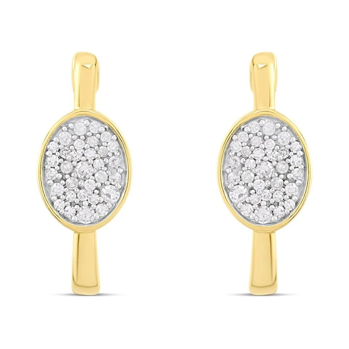9ct Oval Pave-Set Diamond Cluster J-Wedding Earrings - D96101