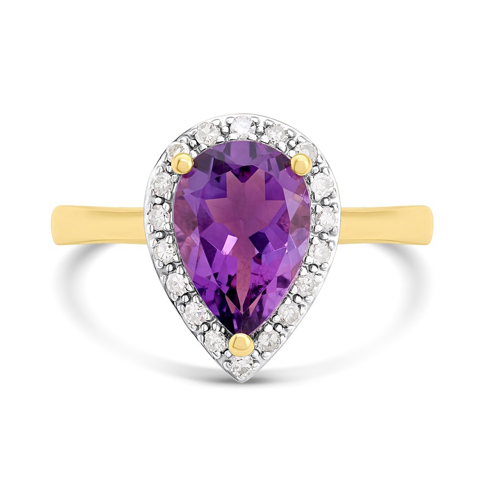 9ct Pear Amethyst And Diamond Cluster Ring - D84110
