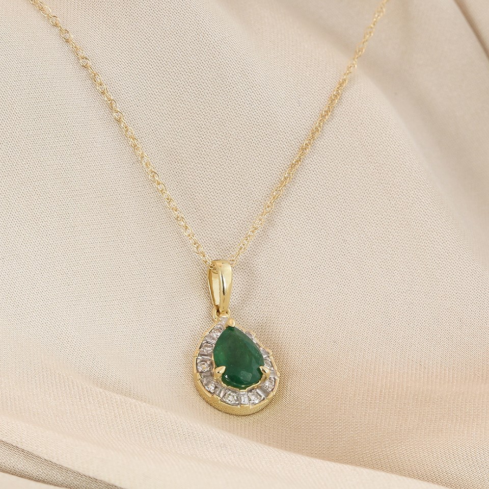 9ct Pear Emerald And Diamond Cluster Necklace - D97145