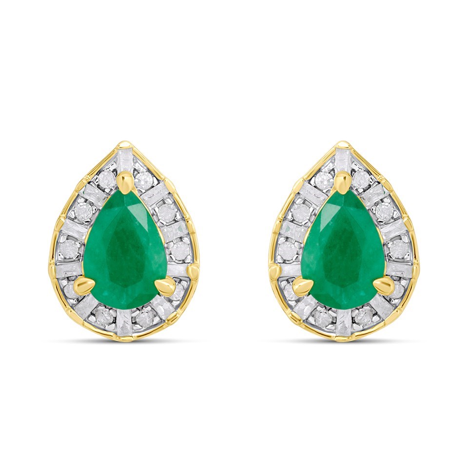 9ct Pear Emerald And Diamond Cluster Stud Earrings - D96118