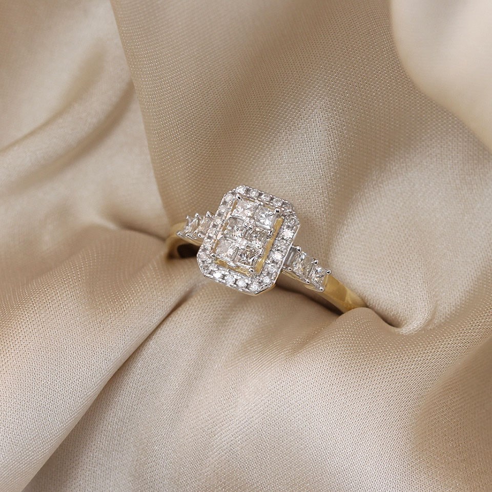 9ct Rectangular Diamond Cluster Ring, 1/2ct - D92109