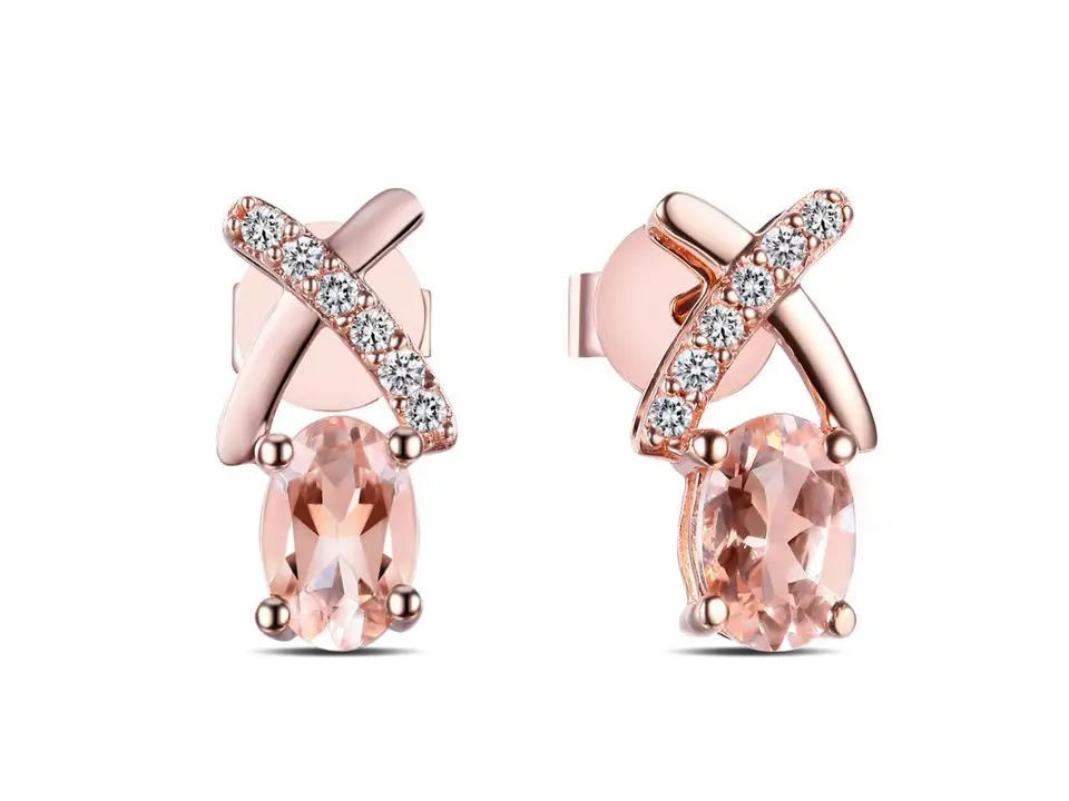 9ct Rose Gold 0.90ct Morganite And Diamond Crossover Earrings - X51720