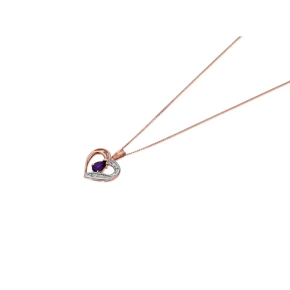 9ct Rose Gold Amethyst And Diamond Heart Necklace - R8132