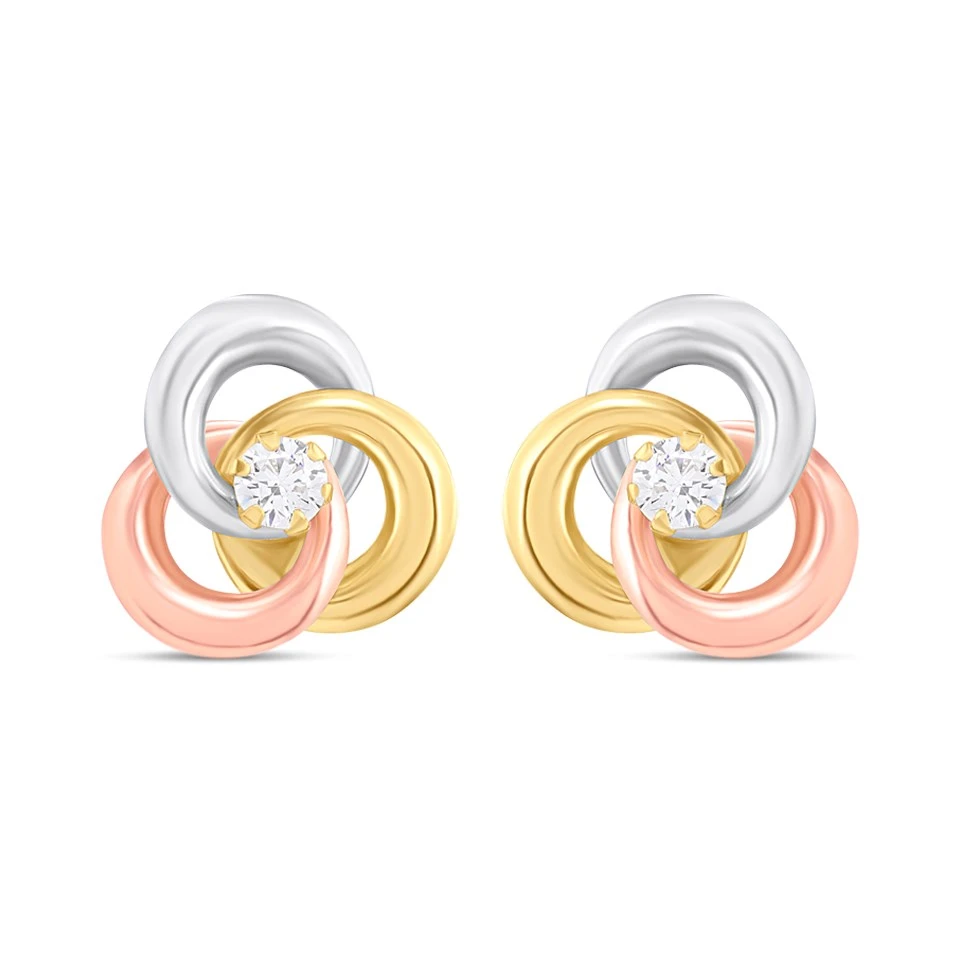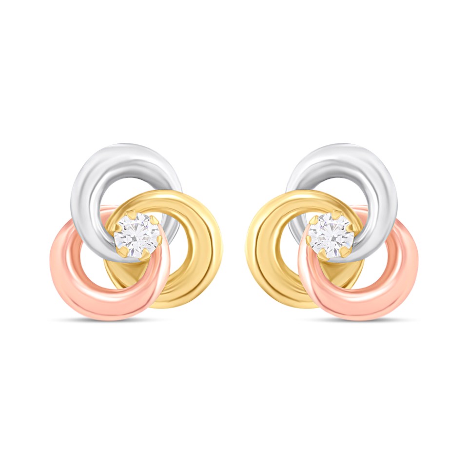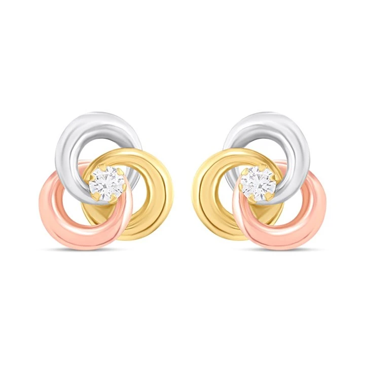 9ct Three Colour Gold Cubic Zirconia Knot Earrings - G4661