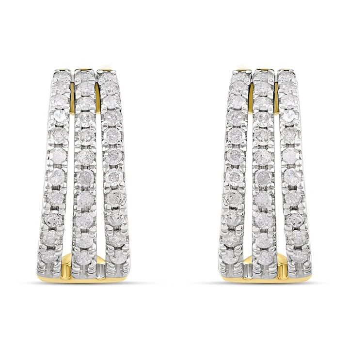 9ct Three Row Diamond-Set Half Hoop Earrings, 1/2ct/pair - D9698